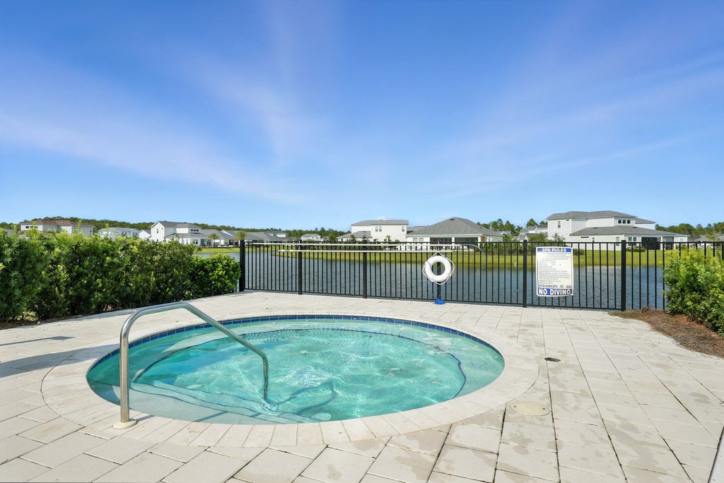 photoreal estateresidential communityswimming poolcommunity amenityflorida panhandlesuburban developmentclear blue skydaytimesunny weatherpatio areablack metal fencegreen landscapingconcrete deckresidential homesspring timegated pool area